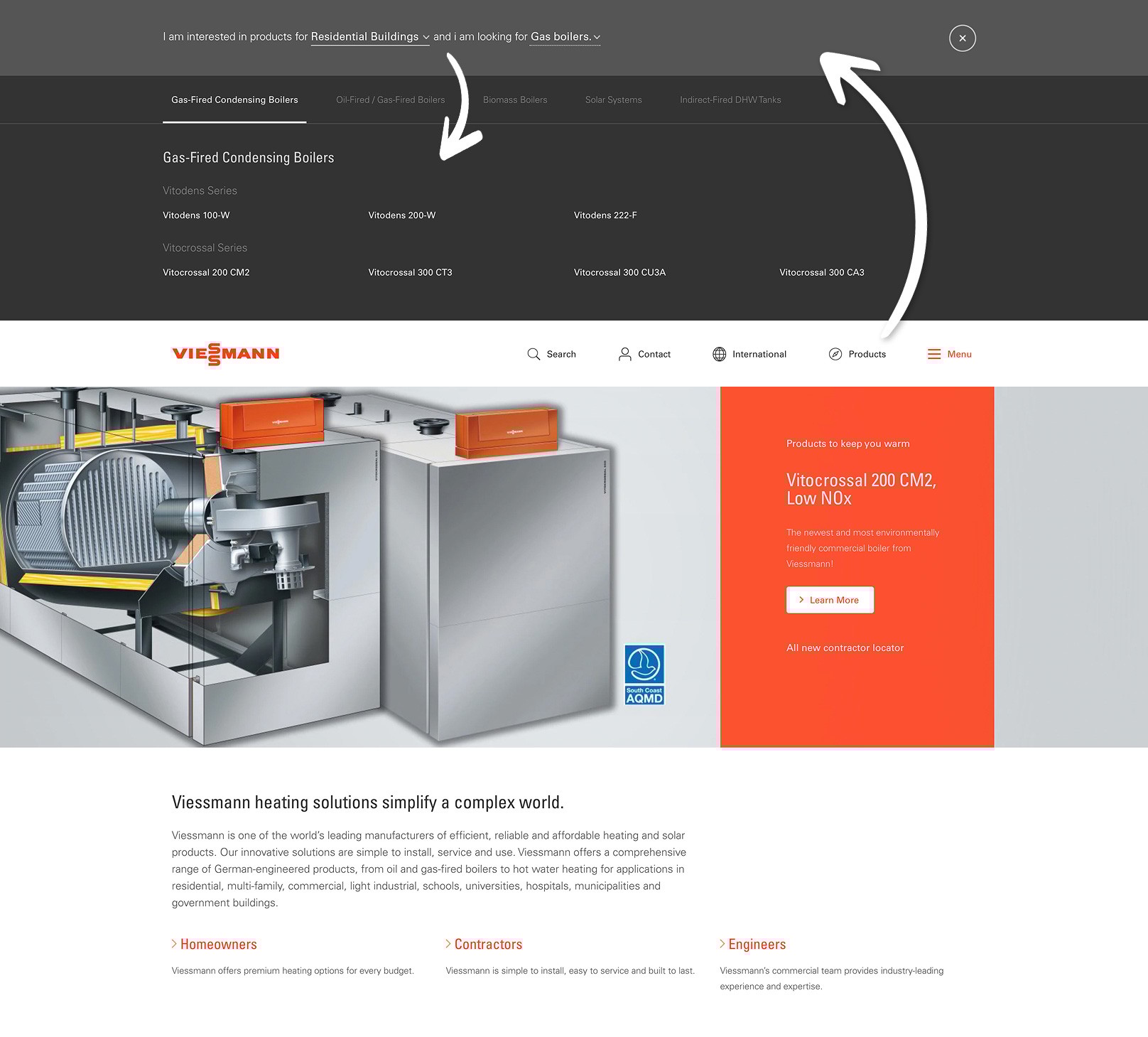 There was a general lack of structure and consistency on Viessmann’s old website. Being a large company with many different branches - the amount of content they had to handle outgrew their old menu structure and made it hard to find anything.
