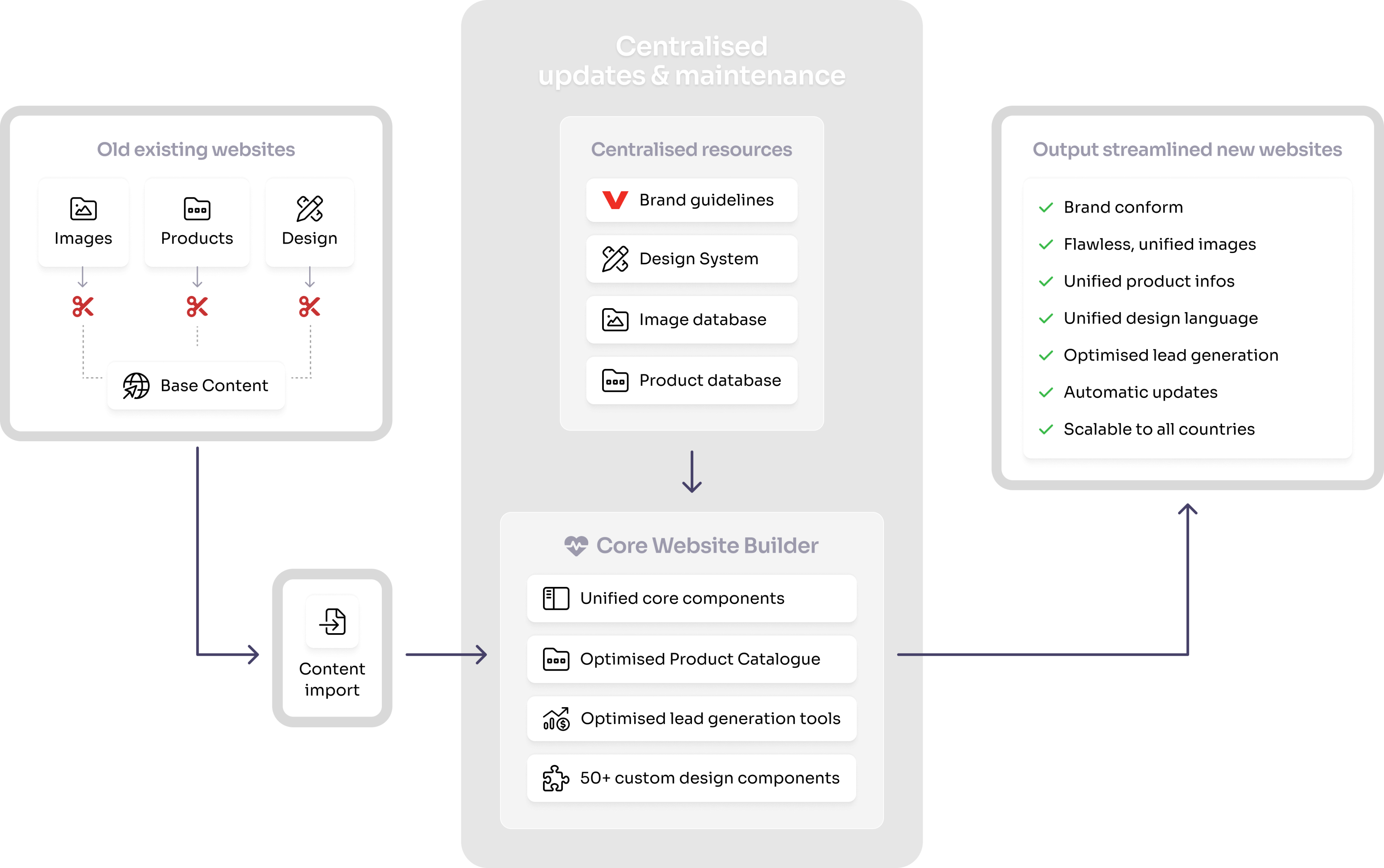 To solve all the numerous problems, we needed a good strategy and a scalable solution that would be able to roll out everything across all the 40+ country websites.