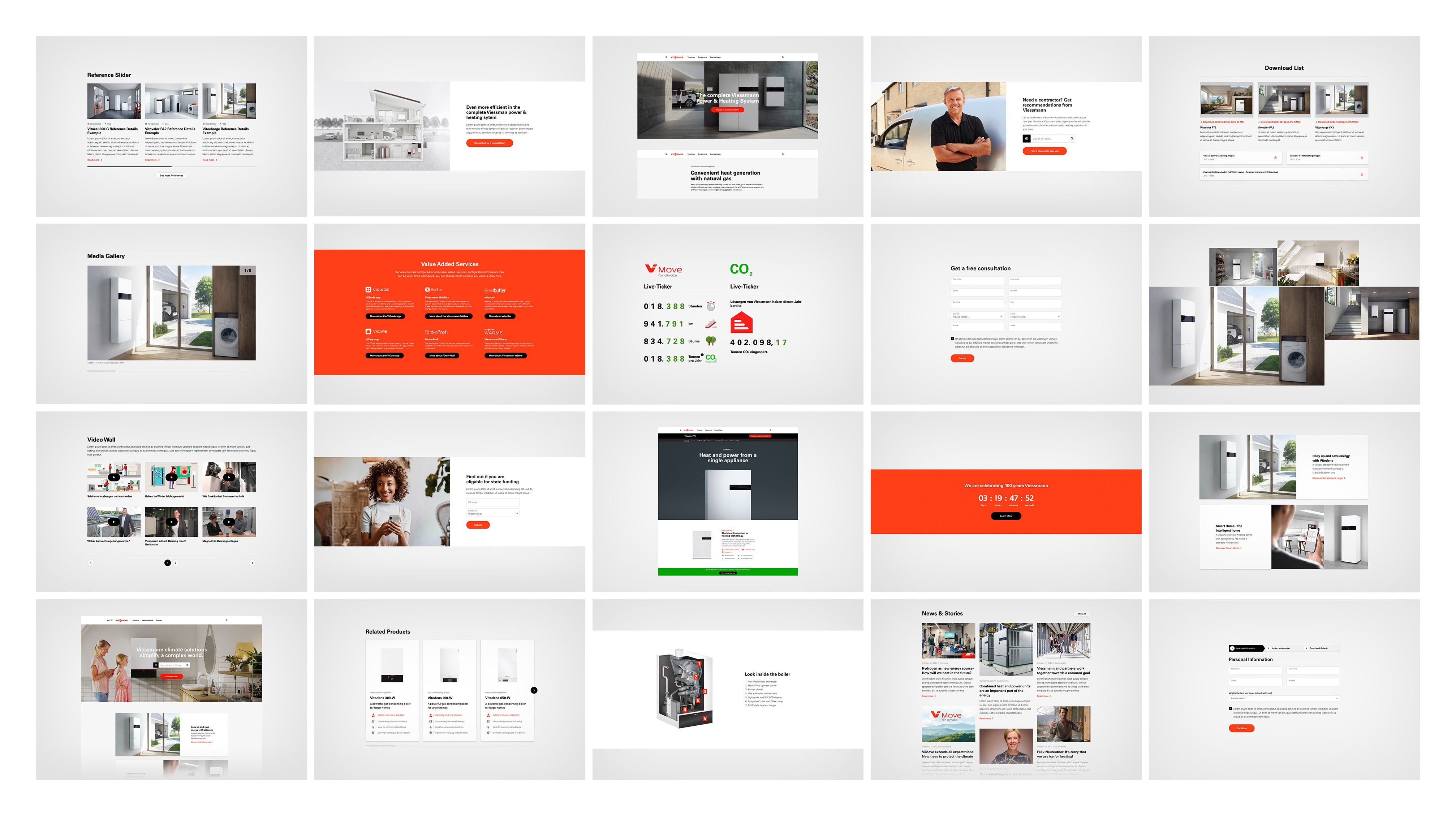 The user-centered redesign of the product catalog and installer finder significantly improved usability, resulting in a substantial increase in lead generation. In November 2022, Viessmann Germany received the Contentspace DX Award for "Best New Website / Website Redesign." Aggregating all websites into one central system and integrating former microsites into the main website positively impacted the company's web KPIs by boosting organic page views, increasing leads, and reducing the bounce rate.